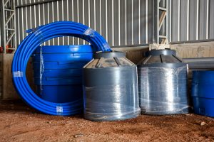 Instalación de tanques y bebederos, zanjados, distribución de cañería.